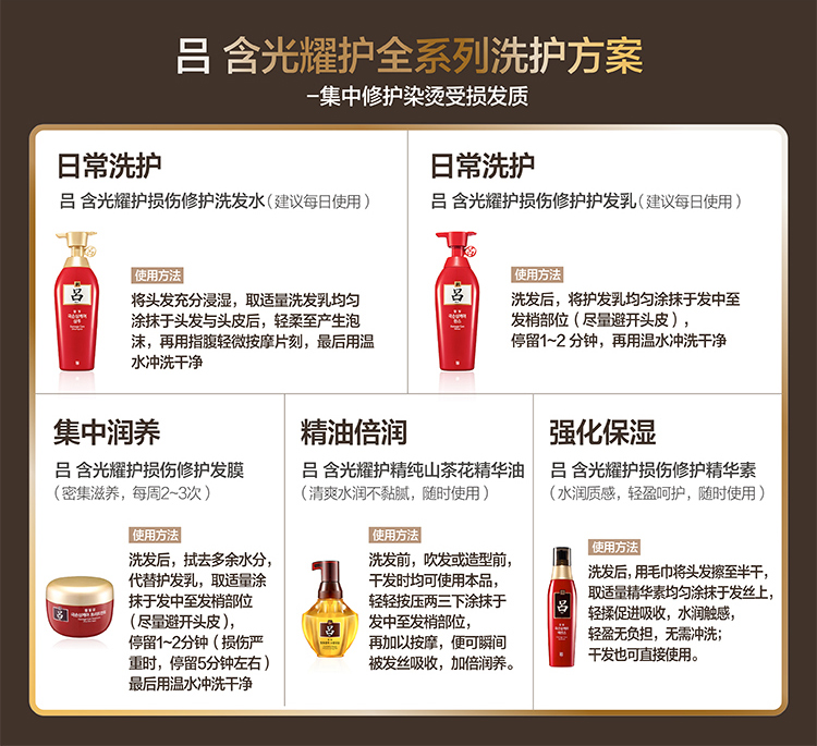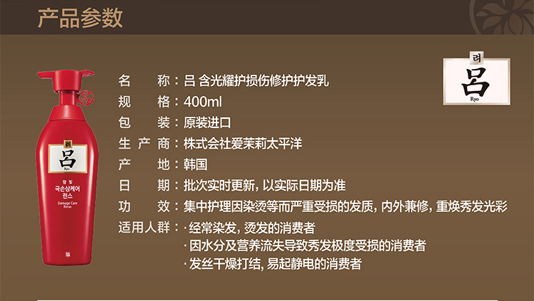 首页> 美妆个护 > 洗发护发> 护发> 【韩国·修护受损发质】吕Ryo 红吕含光耀护损伤修护系列护发素 400ml