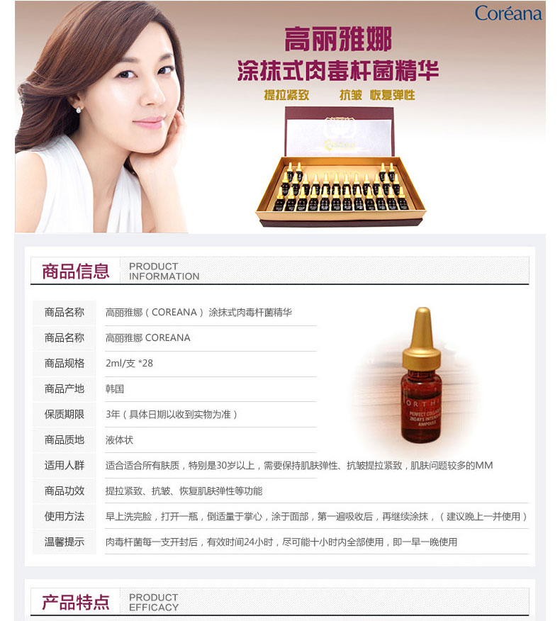 【韩国·28天给你惊喜】高丽雅娜Coreana ORTHIA涂抹式肉毒杆菌精华原液 28支(韩国直邮) (领取商品现金券)
