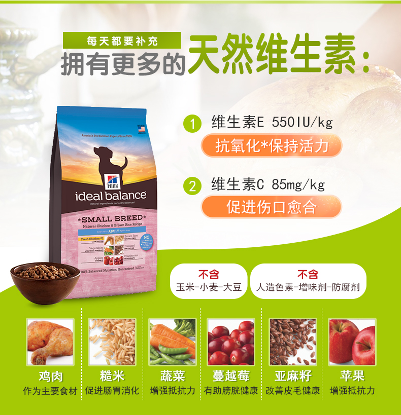 首页> 宠物> 宠物生活> 狗粮> 【美国·天然原料吃出健康】希尔思 鸡肉糙米细粒小型犬幼犬粮 1.81kg