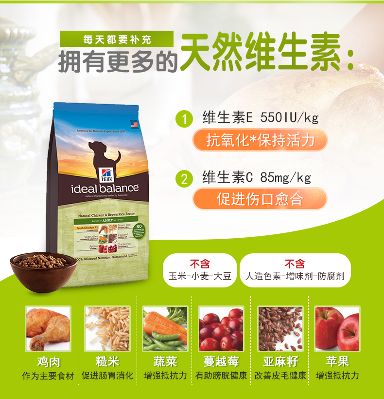 首页> 宠物> 宠物生活> 狗粮> 【美国·天然原料吃出健康】希尔思 鸡肉糙米标准粒成犬粮 6.81kg