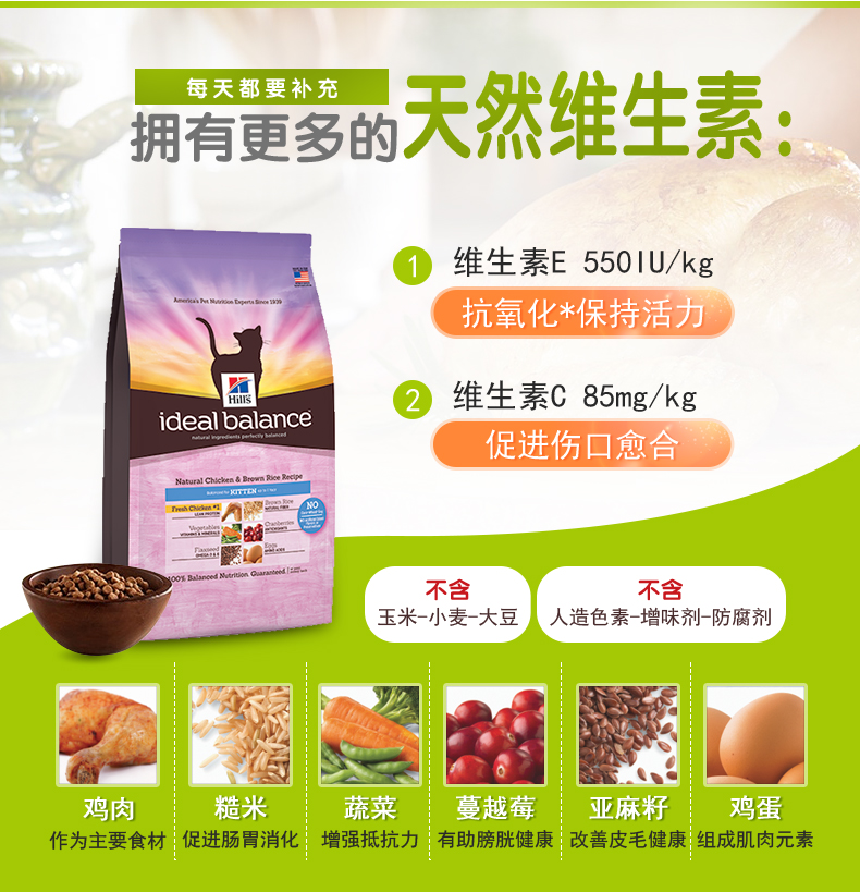 首页> 宠物> 宠物生活> 猫粮> 【美国·天然原料吃出健康】希尔思 鸡肉糙米幼猫粮 2.72kg