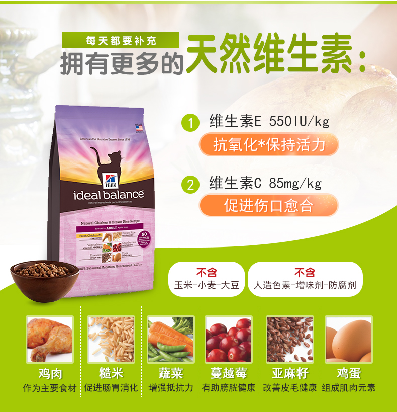 首页> 宠物> 宠物生活> 猫粮> 【美国·天然原料吃出健康】希尔思 鸡肉糙米成猫粮 1.59kg
