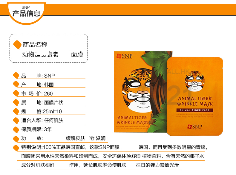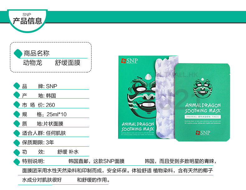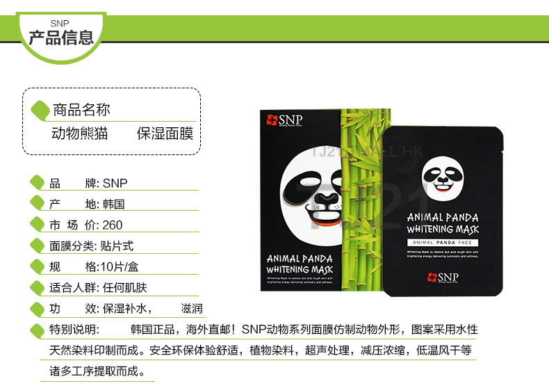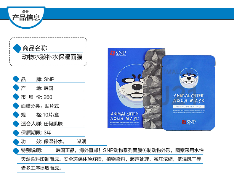 【韩国·可爱又好用】SNP 水漾保湿面膜 10片*50盒(完税) (领取商品现金券)