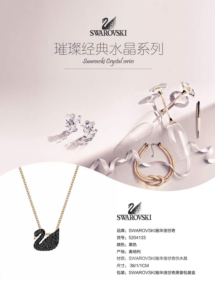 首页> 轻奢品> 配饰摆件> 吊坠> SWAROVSKI 施华洛世奇 Swan Small黑色仿水晶黑天鹅项链链坠 5204133