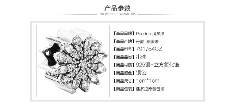 潘多拉PANDORA 925银镂空闪耀锆石雪花串珠 791764CZ (领取商品现金券)