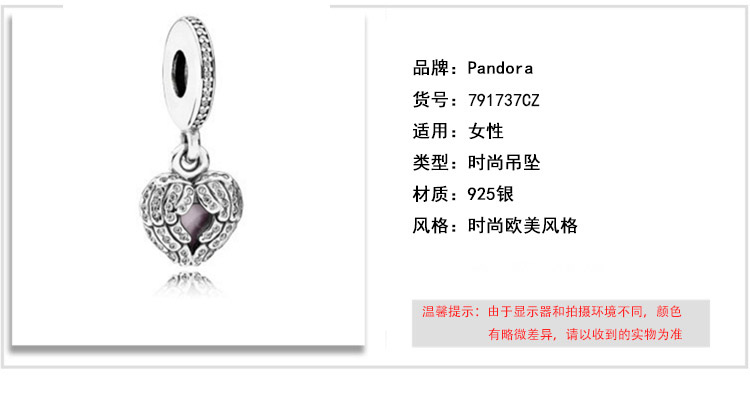 潘多拉PANDORA 925纯银天使之翼爱心吊坠 791737CZ (领取商品现金券)