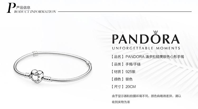 潘多拉PANDORA Moments 心形扣银手链 590719(20CM) (领取商品现金券)
