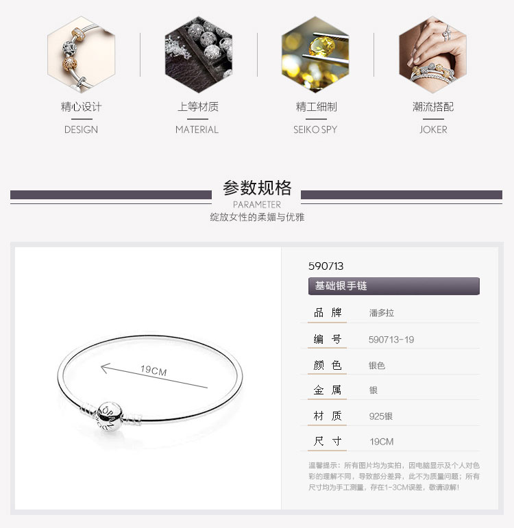 潘多拉PANDORA 基础链新款手链 590713(19CM) (领取商品现金券)
